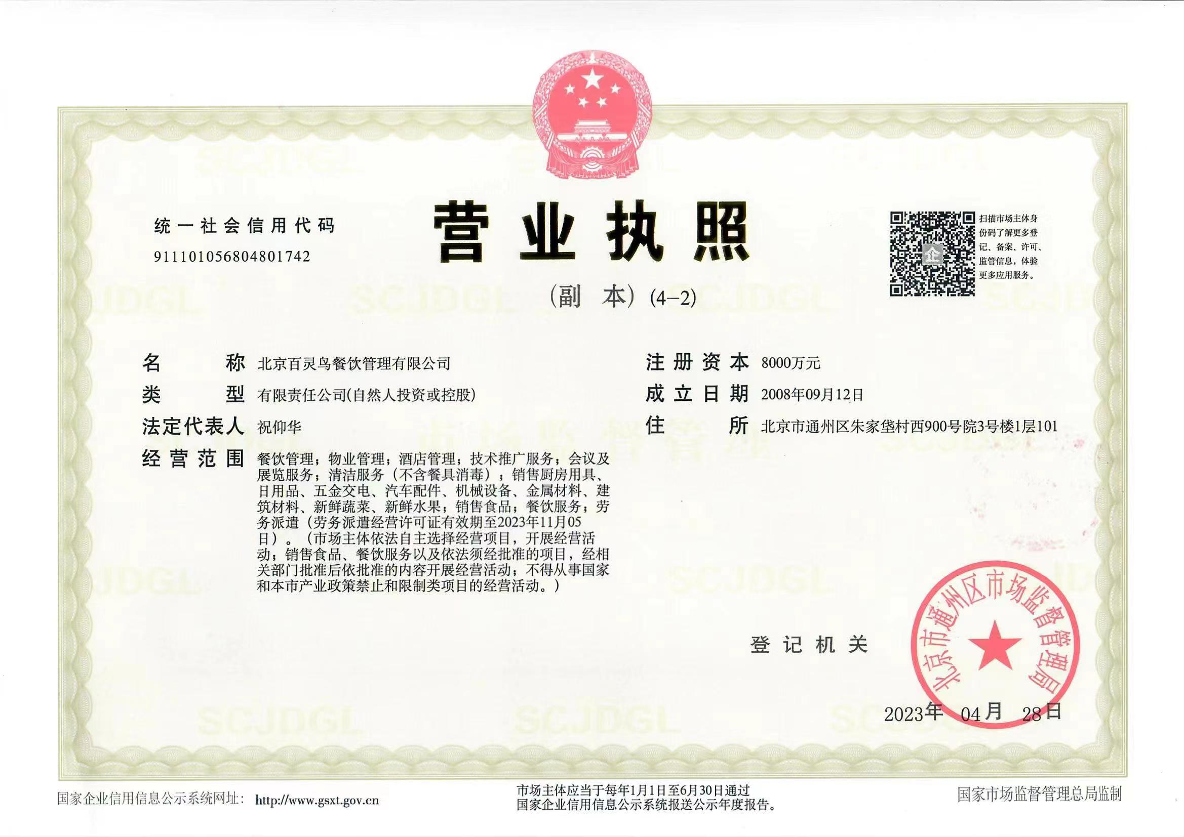 北京百靈鳥餐飲管理有限公司